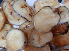 - Rebozar las rodajas de berenjena en la mezcla y freír en abundante aceite caliente hasta que estén doradas.