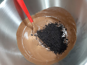 - A continuación añadimos las oreos pulverizadas (incluido el relleno) y con una espátula la iremos integrando.